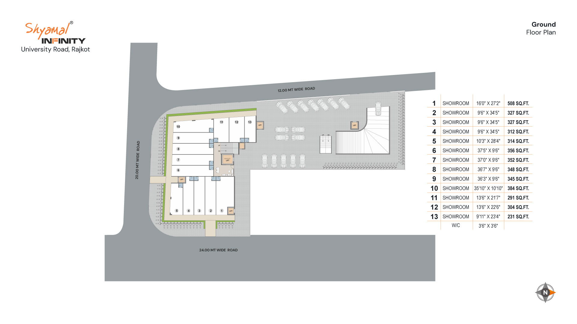 A prestigious commercial development strategically located on bustling University Road in Rajkot. With elegant design, thoughtful planning, and quality construction, this Shyamal Infinity promises an executive lifestyle. Whether you’re seeking showrooms, offices, or shops, Shyamal Infinity awaits you with infinite possibilities.